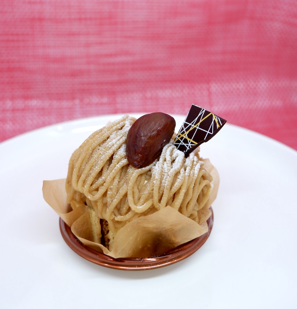 チョコをサンドした生地に栗のクリームスペイン産の栗を入れて生クリームとマロンクリームを絞りました